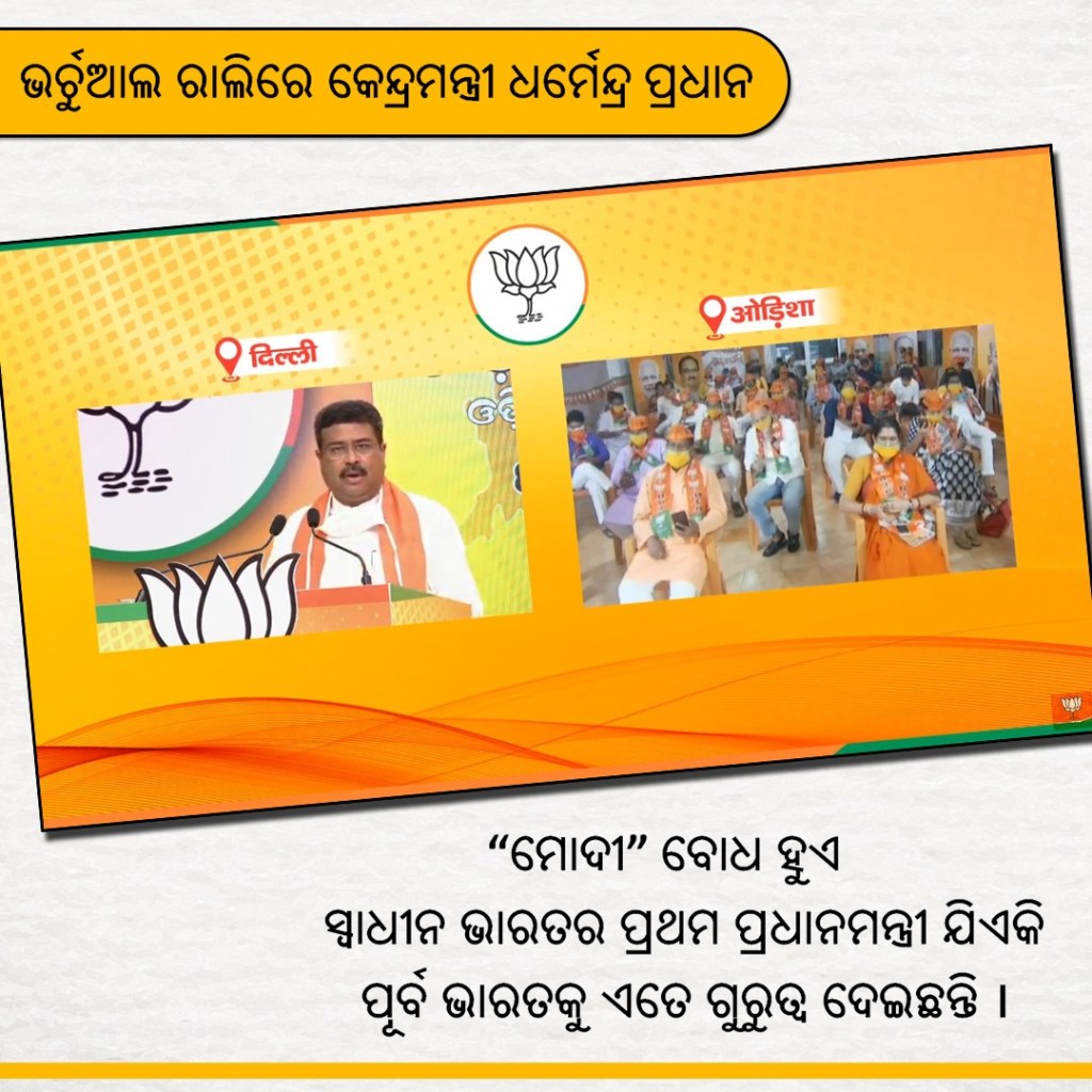 ମୋଦି ସରକାରଙ୍କ ଦ୍ୱିତୀୟ କାର୍ଯ୍ୟକାଳର ପ୍ରଥମ ବର୍ଷ ପୂର୍ତ୍ତି ଅବସରରେ ଦଳ ପକ୍ଷରୁ ଆୟୋଜିତ ଭର୍ଚୁଆଲ ରାଲି-ଓଡିଶା ଜନ ସମ୍ବାଦ କାର୍ଯ୍ୟକ୍ରମରେ ନୂଆଦିଲ୍ଲୀରୁ କେନ୍ଦ୍ର ଗୃହମନ୍ତ୍ରୀ @AmitShah ଜୀ, ରାଷ୍ଟ୍ରୀୟ ସାଧାରଣ ସମ୍ପାଦକ ଅରୁଣ ସିଂହଜୀ ଓ କେନ୍ଦ୍ରମନ୍ତ୍ରୀ ପ୍ରତାପ ଷଡ଼ଙ୍ଗୀଜୀଙ୍କ ସହ ଯୋଗଦେଲି ।