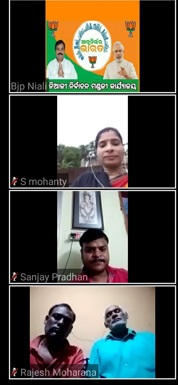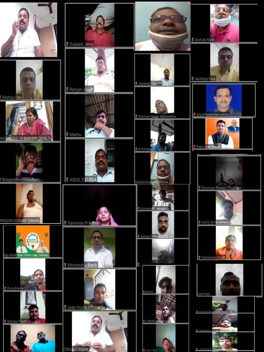 ନିଆଳୀ ବିଜେପି ନେତା ଛବି ମଲ୍ଲିକ ଙ୍କ ନେତୃତ୍ବରେ ଗବବସ୍ତ ମଣ୍ଡଳ,କୁରାଙ୍ଗ ପ୍ରଧାନ, କୁରାଙ୍ଗ ଶାସନ,ନଗରୀ ଖଲର୍ଦା ,କୋରକୋରା ,ହରିଅନ୍ତା,ଉଷୁମା,ସାଇଁଶୋ ପଞ୍ଚାୟତର ପ୍ରମୁଖ କାର୍ଯକର୍ତ୍ତା ବନ୍ଧୁ ମାନଙ୍କ ସହିତ ଆସନ୍ତା ୪ ତାରିଖରେ ହେବାକୁ ଥିବା ବିଧାନସଭା ସ୍ତରୀୟ ଜନ ସମ୍ବାଦ ରାଲି ଓ ଗୃହ ସମ୍ପର୍କ ଅଭିଯାନ କାର୍ଯ୍ୟକ୍ରମ ବିଷୟରେ ଆଲୋଚନା କରାଗଲା ! ଏଥିରେ ମଣ୍ଡଳ ସଭାପତି ଧୀରେନ୍ଦ୍ର ବାରିକ ସଭାପତିତ୍ବ କରିଥିବା ବେଳେ , ନିର୍ବାଚନ ମଣ୍ଡଳୀର ସୋସିଆଲ୍ ମିଡିଆ କୋଡିନେଟର ରାଜକୁମାର ସ୍ବାଇଁ କିପରି ଅଧିକ ରୁ ଅଧିକ କାର୍ଯ୍ଯକର୍ତ୍ତା ଆପ୍ ମାଧ୍ୟମରେ ଯୋଡି ହୋଇ ପାରିବେ ବୁଝାଇ ଥିଲେ । ଏହି ଭର୍ଚୁଆଲ ରାଲି ନିଆଳୀ ବିଜେପି କାର୍ଯ୍ଯକର୍ତ୍ତା ମାନଙ୍କ ମଧ୍ୟରେ ଉତ୍ସାହ ବୃଦ୍ଧି ପାଇଛି।