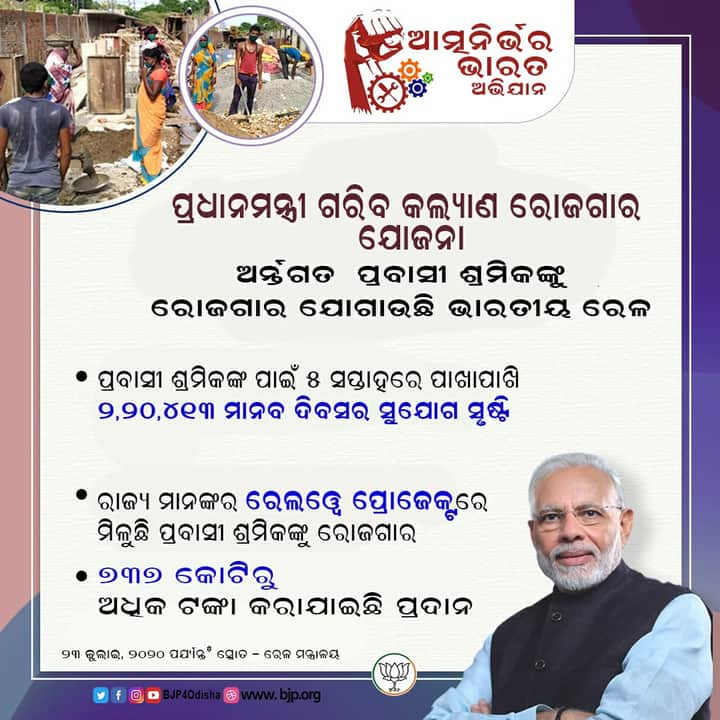 ପ୍ରଧାନମନ୍ତ୍ରୀ ଗରିବ କଲ୍ୟାଣ ଯୋଜନା ଅନ୍ତର୍ଗତ ପ୍ରବାସୀ ଶ୍ରମିକଙ୍କୁ ରୋଜଗାର ଯୋଗାଉଛି ଭାରତୀୟ ରେଳ l